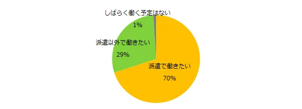 現在、派遣社員として働いている方に「働き方の満足度」を伺ったところ、73%が「満足している」と回答しました。また、今後希望する働き方に関しても7割の方が「派遣で働きたい」と回答しており、満足度の高さが伺える結果となりました。