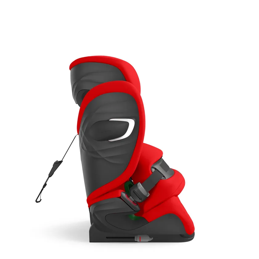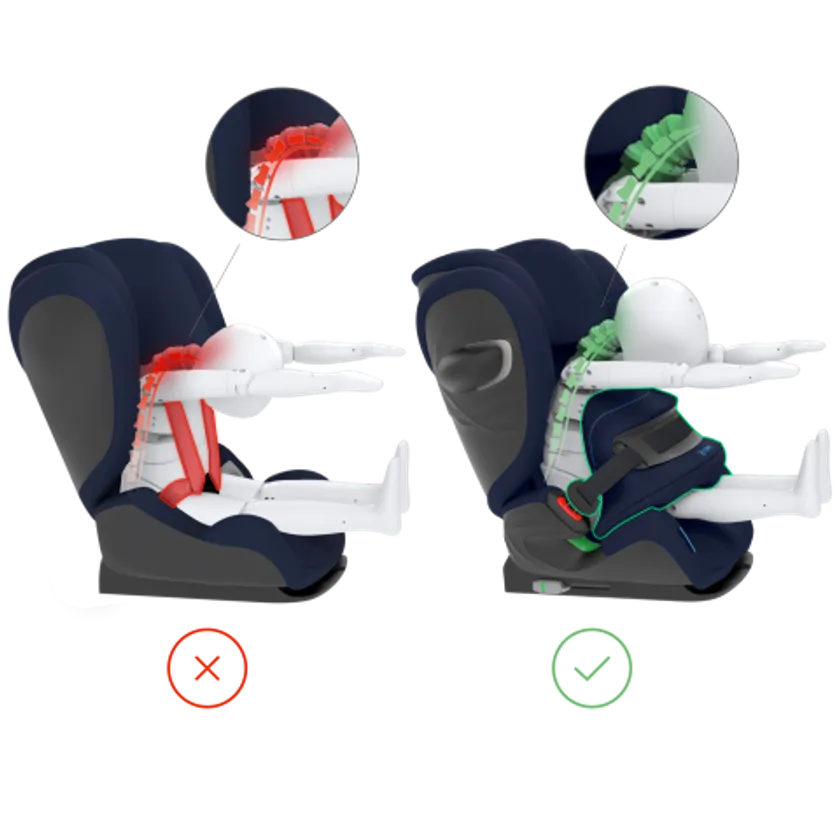 事故の際怪我をしやすい頭部・頸部をヘッドレスト内の安全なエリアに保てるよう、リクライニングヘッドレストを搭載しています。このリクライニング機能は3段階調整ができ、お子さまが眠ってしまった時でも後ろに倒すことで、頭が前方に傾きにくく、ヘッドレスト内の安全なエリアで衝突時にも衝撃から頭を保護することができます。また、乗車中眠ってしまうことが多いお子さまが、快適に安全に過ごせる体勢を保つことができます。高さ調整機能もついており12段階調整できるので、お子さまの成長に合わせて使うことが可能です。