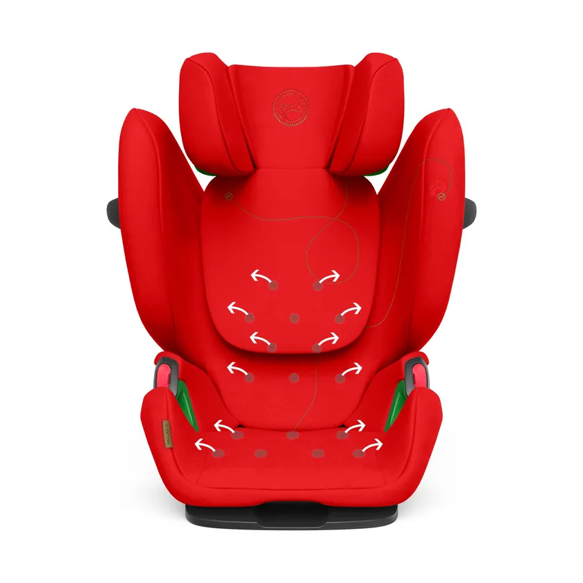 側面衝突の衝撃からの安全性を高めるL.S.P. Plus(リニアサイド・インパクト・プロテクション プラス)を搭載。素早い初動で衝撃を「逃がす・分散する」ことができ、チャ一ルドシート本体への影響を和らげることで側面衝突からお子さまを守ります。また、R129のi-SIZE規格に対応しており、シートは本体に搭載されたISOFIX固定金具と背面部のテザーアンカーを使うことでミスユースを防ぎしっかりと固定。安全機能が効果的に働きます。