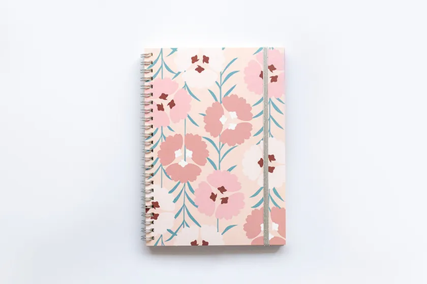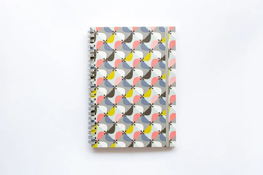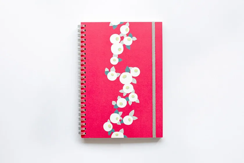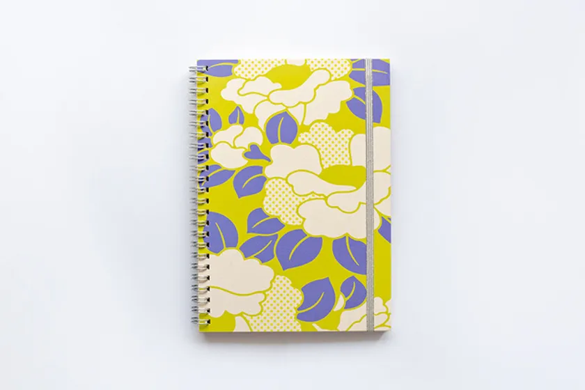 表紙デザインには、京都の老舗きものメーカーから提供いただいた「きもの」の図案を使用。きもの屋のスタッフの方を交えながら、何十種類もある図案からどれを使用するか打ち合わせを行い、カラーバリエーションを何パターンも制作するなど、現代のライフスタイルに合ったデザインにするため試行錯誤を繰り返しました。今回は第一弾として4種の表紙をご用意しています。