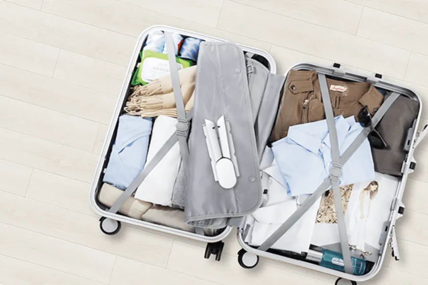 スマートUV除菌ハンガーは、折り畳むことが可能なので、旅行や出張に持参することが可能。