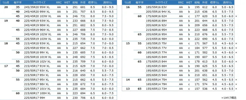 EfficientGrip RVF02の開発においては、ミニバンの特徴である車高の高さによる横揺れの軽減と車内の静粛性の改善を図り、「快適性」の向上を実現しました。また、同時に、転がり抵抗も軽減させ、全40サイズでAAとなり「経済性」の向上も実現しています。