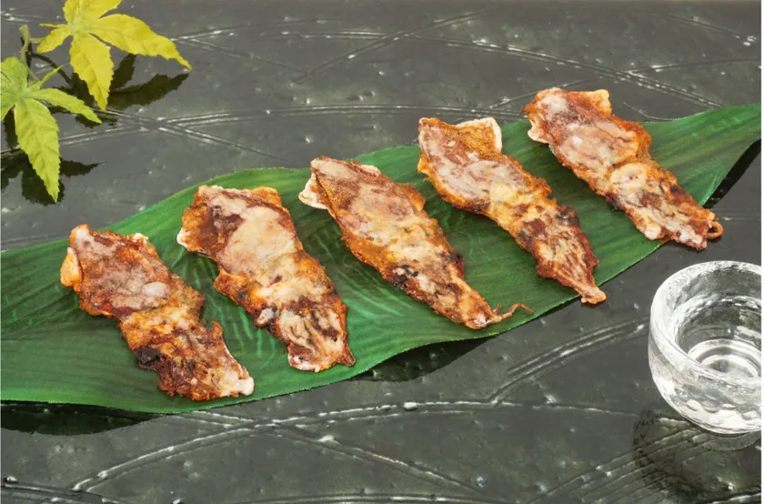 生のホタルイカを、まるごとそのまま挟み焼きにし、その後カラッと揚げることで素材の旨味をそのまま残しつつ、カリッとした新しい食感のホタルイカが楽しめます。