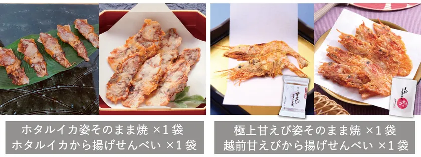 ・北陸で春に旬のホタルイカと甘えびを、各2種類の製法で食べ比べができるセット