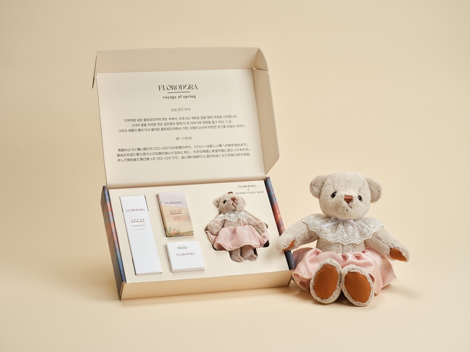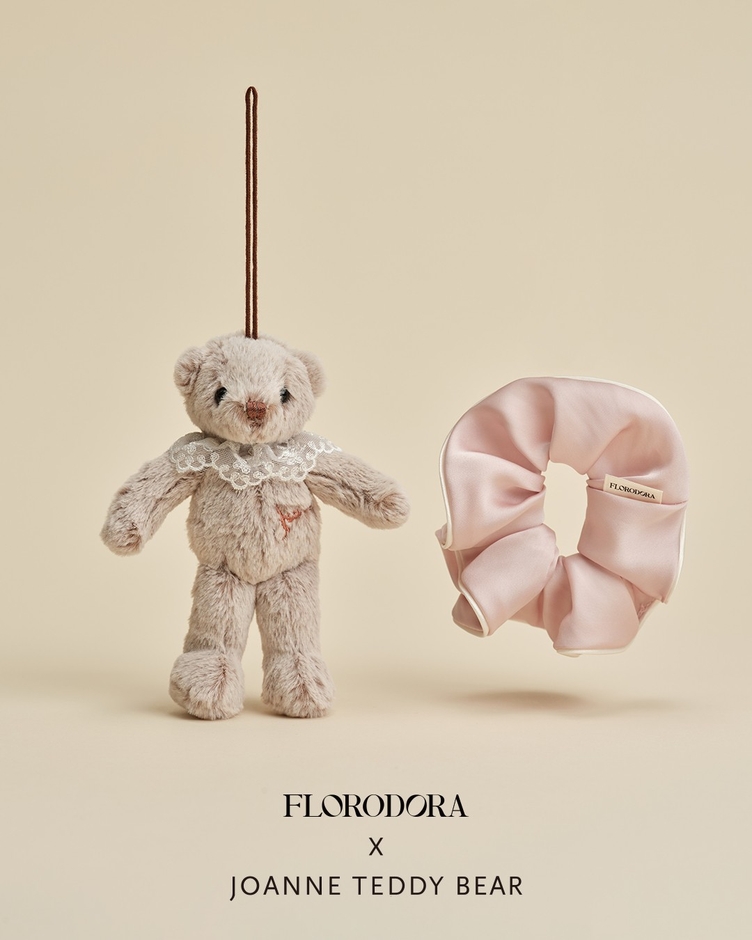 この象徴的なベアに着想を得て、フローロドラは、韓国の著名テディベアアーティスト、ジョアン・オー氏が率いるアートベアブランド「ジョアン・テディベア(Joan Teddy Bear)」とのコラボレーションを実現しました。クラシックな感性と優しさをモダンに再構築したこのアートブランドは、世界中のコレクターやハイブランドからも高い支持を得ています。