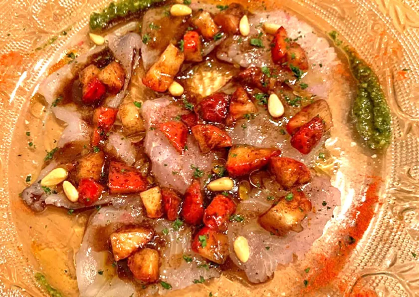 鮮魚のカルパッチョ イチゴバルサミコソース