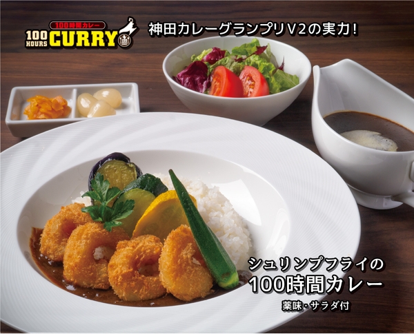 100時間かけて作り上げた濃厚で風味豊かな味わい深い100時間カレーのルーを使用した“シュリンプフライの100時間カレー”。