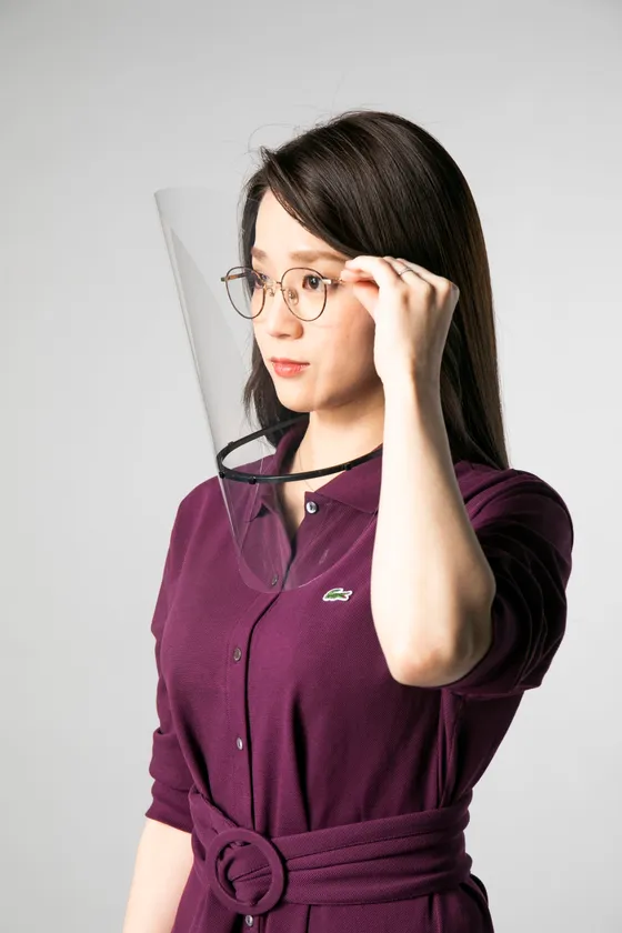 顔の表情がはっきりわかり、下方向の飛沫をできるだけブロック! 軽量で大型の首掛け専用フェイスシールド「レイヤード」新発売