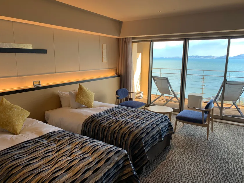 今回リニューアルする「かんぽの宿赤穂」は、全室オーシャンビューで、最上階ウッドデッキバルコニー付洋室と、瀬戸内海の景観と一体化したインフィニティ露天風呂で寛ぎ、レストランでは瀬戸内海の海の幸をお楽しみいただけます。