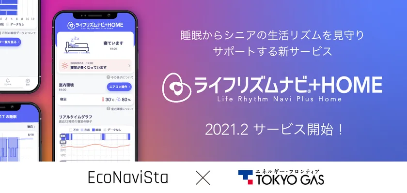 エコナビスタ株式会社(社長:渡邉 君人、以下「エコナビスタ」)と東京ガス株式会社(社長:内田 高史、以下「東京ガス」)※1は、このたび、シニアケアサポートサービス「ライフリズムナビ+HOME」(以下「本サービス」)を開発し、2021年2月3日より提供を開始しました。