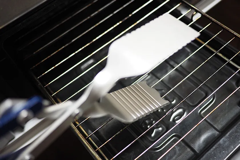 BBQマルチトングの先端部分には溝が付いているので、バーベキュー終了後の汚れた網の掃除にも使用可能です。ご自宅の魚焼きグリルの掃除などにも使用できます。