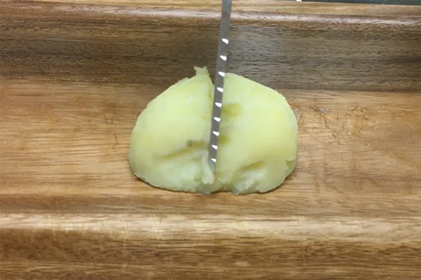 先端は尖っているのでソーセージや焼いた野菜など柔らかい食材であれば、カットすることが可能です。柔らかい食材は切れますが、鋭利にはなっていないので、指などが切れる心配はありません。