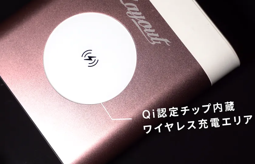 ● qi認証チップ内蔵ワイヤレス充電エリア。パススルーも機能搭載