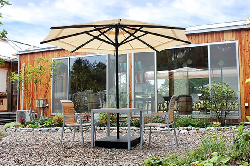 2.デザイン性が高く、風に強い大型パラソル「ステラ」
