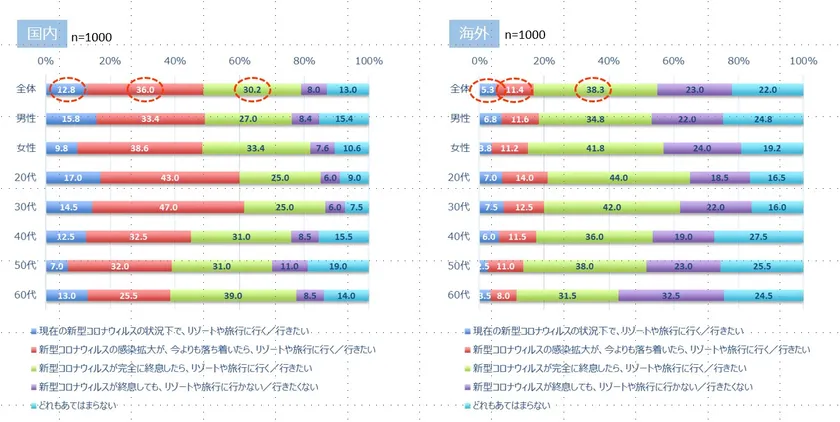 (図1)リゾートや旅行の再開意向(国内・海外)