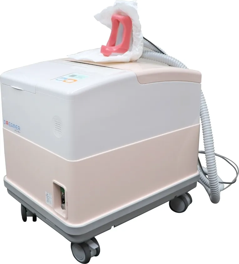 『自動排泄支援ロボット:ドリーマー』は介護保険でレンタルが可能な、自動排泄処理装置です。介護用オムツの様に装着するだけで、排泄物(尿・便)を吸引し、さらに、おしりの洗浄・乾燥・除湿を全自動で行う排泄介護の新しいカタチを実現した介護ロボットです。また、高性能フィルターで排泄物の臭いを取り除き、介護環境を快適に保ちます。