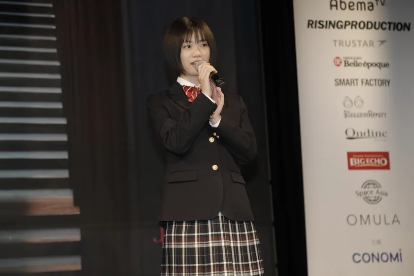 一般応募者約3,000人の中から、女子グランプリには女優としても活躍している千葉県出身の高校3年・竹内詩乃が、男子グランプリにはABEMA番組に出演で同世代に人気急上昇中の東京都出身の高校1年・酒寄楓太が選ばれ、授賞式にて、それぞれ受賞した喜びを報告しました。