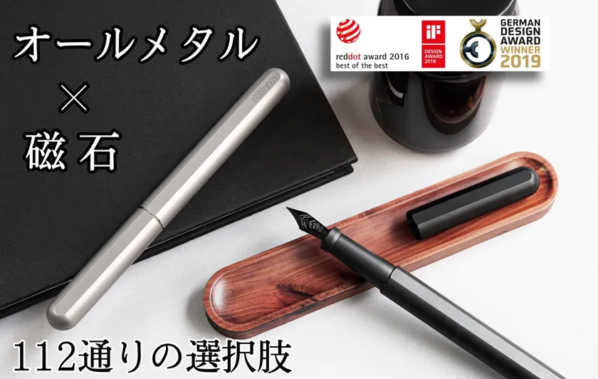 stilform INKは、スタイリッシュなデザインと特殊なマグネット構造が特徴の万年筆です。アルミ製とチタン製の2つの素材から商品を展開しており、特にチタン製の万年筆は国内外を問わず、多くの万年筆愛好家から注目を浴びています。オプションのチタン製ニブは、世界でも珍しいため、すぐに完売となるほど大好評です。