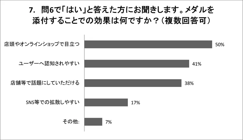 問7:問6で「はい」と答えた方にお聞きします。メダルを添付することでの効果は何ですか?(複数回答可)