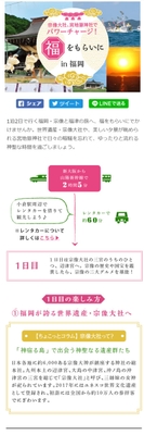 西日本旅客鉄道株式会社が送る、1泊2日で行く福岡・宗像と福津の旅の紹介LP。「福をもらいにでかけませんか?」がキャッチフレーズです。
