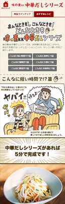 「あんなときにもこんなときにもどんなときにも味の素kk中華だしシリーズ」がキャッチコピー。中華だしシリーズを使ったレシピが紹介されているLPです。