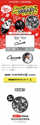 全体的に、コラボパッケージにも使われているChocomooさんのイラストが多く使われているのでとてもポップな印象。応募はがきのダウンロードなども簡単にできるようになっています。