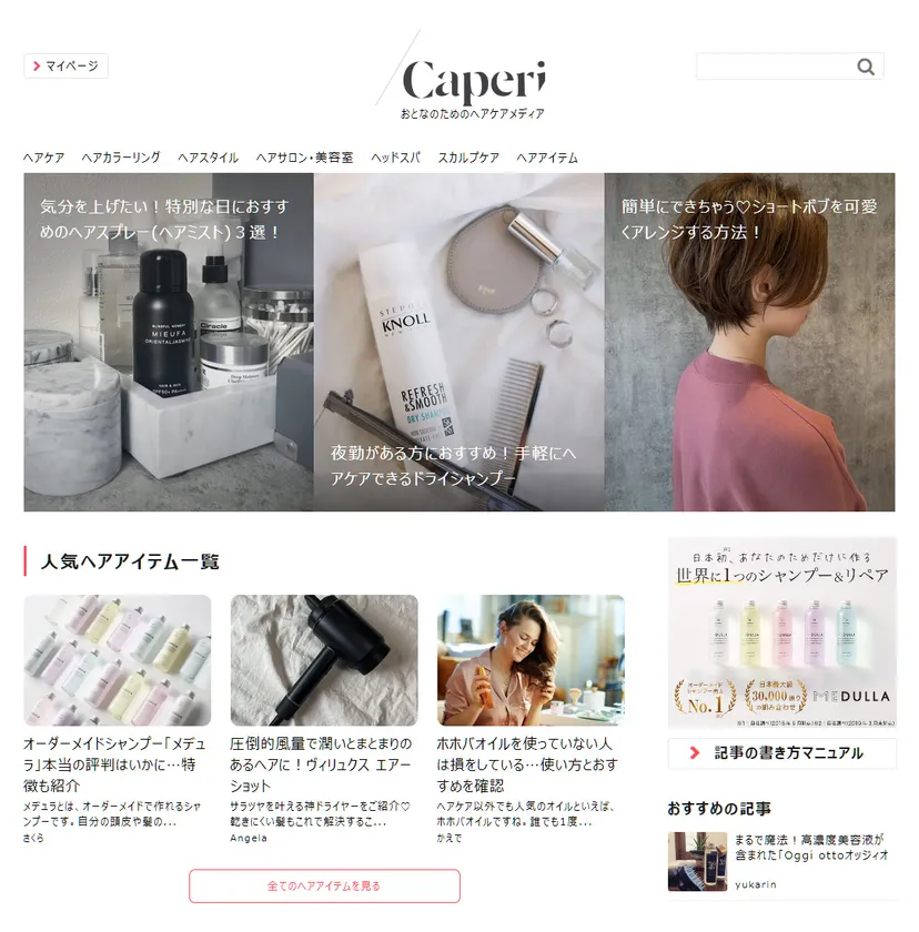 「Caperi(カペリ)」は、おとなのための参加型ヘアケアWEBメディアです。