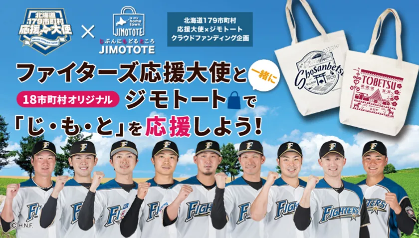 株式会社ジムニーワークス(所在地:札幌市中央区、代表取締役社長:珊瑚 和範)は、株式会社北海道日本ハムファイターズ(所在地:札幌市豊平区、代表取締役社長:川村 浩二)が手掛ける「北海道179市町村応援大使」の活動と連動し、クラウドファンディング・サービス『ACT NOW』を通じて、応援大使が応援する18市町村の特徴をプリントデザインしたトートバッグ「ジモトート」の商品化のための支援者を募り、その活動を通して各地域の更なる活性化を図るためのプロジェクト、『ファイターズ応援大使と一緒にジモトートで「じ・も・と」を応援しよう!』を開始することになりましたので、お知らせ致します。
