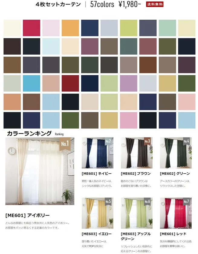 業界初!規格外のバリエーションで消費者の悩みを解決! 初夏には57色x66サイズから選べる 人気の4枚セットカーテンが衝撃価格で登場予定