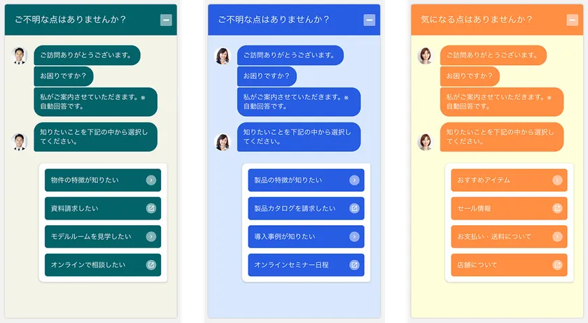 ・選択肢タイプのチャットボットでお客様に負担をかけることなく、そのお客様に適したコンバージョン(購入やお申込みなど)ページに誘導することができます。