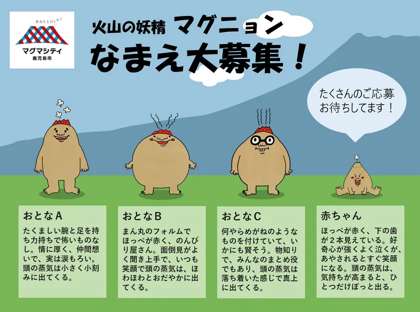 現在、このマグニョン4キャラクターが子どもから大人までさらに親しまれるよう、それぞれの名前を募集しています。たくさんのご応募をお待ちしています。