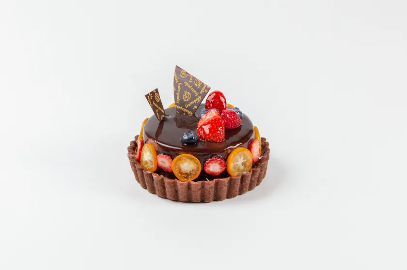 この時期にしか販売されない『ミロワールショコラ』は、鏡のような表面が煌びやかな、チョコムースとチョコスポンジが層になった楽しい食感のタルトです。タルト生地にもココアが練りこまれ、チョコ好きにはたまらない一品。金柑の爽やかな香りといちごの組み合わせが絶妙なタルトになっています。13cmの大きさは贈り物にも、ご自宅用にもピッタリ。果物のことを知り尽くしたフルーツ専門店が考案した、バレンタインを彩る絶品チョコレートタルトです。