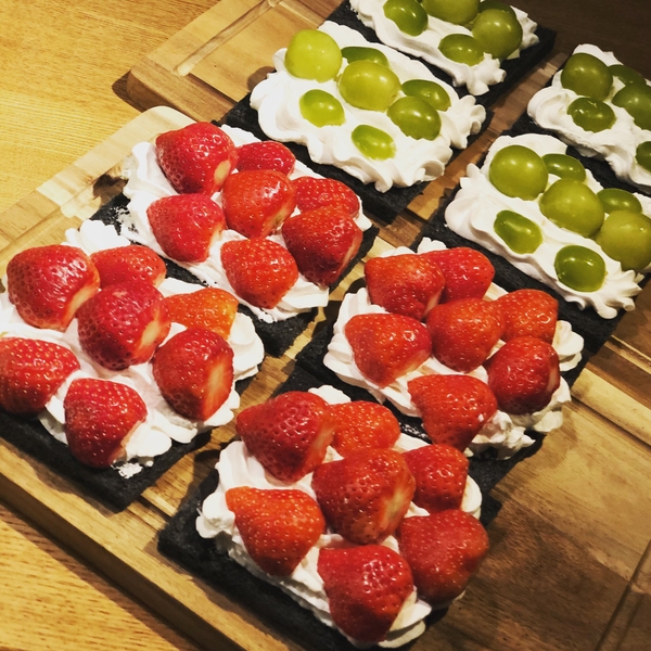 その黒生パンで挟むフルーツはあまおう苺とシャインマスカットが二代人気!