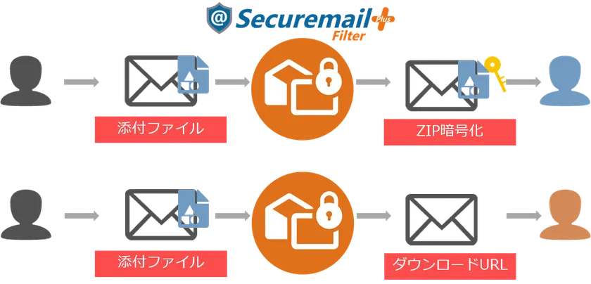 当社の【@Securemail Plus Filter】ではダウンロードURL・ZIP暗号化の両方に対応した送信セキュリティを提供しております。