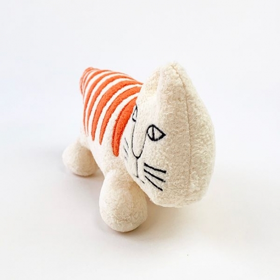 クリーム色にオレンジのシマ模様のマイキーのぬいぐるみです。