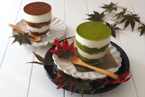 ⑨ 冷蔵庫で冷やし、食べる直前に抹茶(ココア)パウダーを表面に振ります。
