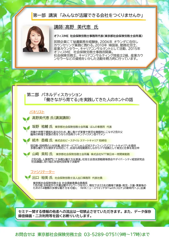 東京都社会保険労務士会(会長:寺田 晃)は、「みんなが輝く社会を みんなが輝く会社を」テーマにした女性活躍促進セミナーを以下のとおり、3月5日にオンラインで開催いたします。