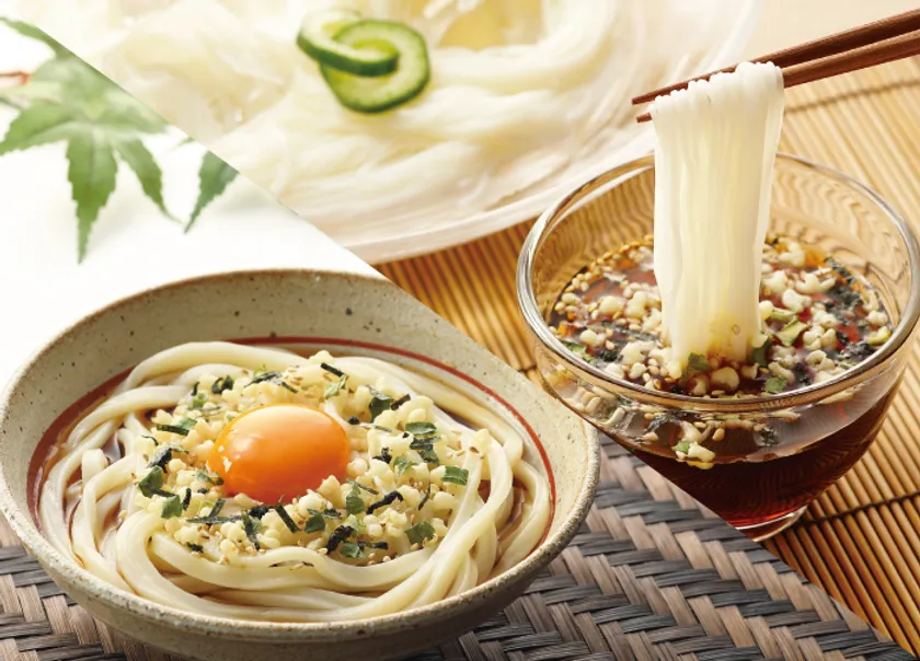 パッケージは、清涼感のある水色を背景にし、悪魔と化したそうめんのキャラター「やく美」が飛ぶ楽しいデザインです。「悪魔めし」シリーズの新キャラクターとして、食卓を楽しく演出いたします。