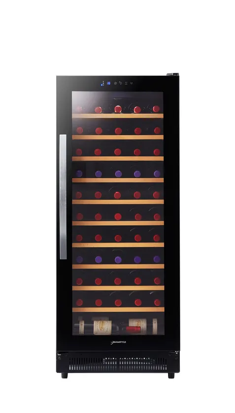 これから本格的にワインをコレクションする方のニーズにも、カジュアルにワインを愉しむ方のストックにも適した余裕の大容量、53本*収納可能。幅513mmのコンパクト設計なので置き場所を選びません。