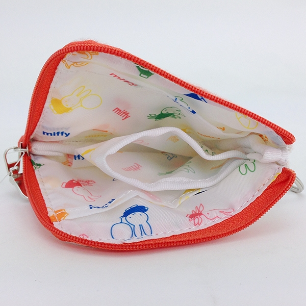 こちらもミッフィーのお顔がデザインされたコインポーチです。白地にオレンジの縁取りがミッフィーぽいですよね。サイズは100×100mmの正方形。