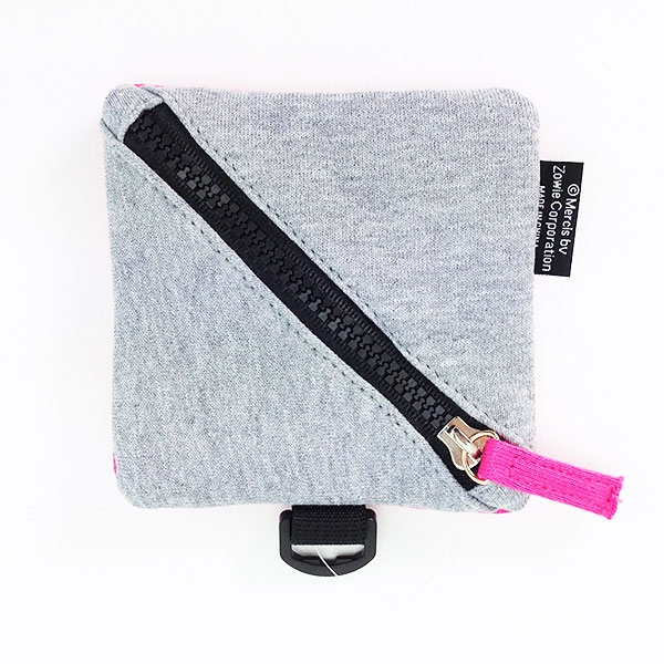 裏側はグレーで、対角線にファスナーがついています。ちょっと変わったスポーティーなデザインですよね。