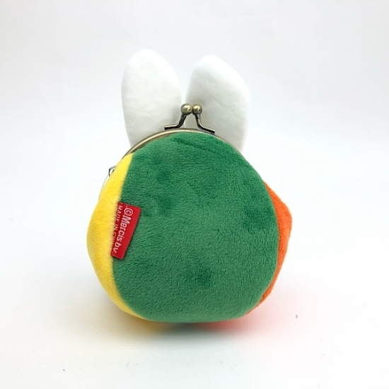反対側を向けると、がま口が現れ、コインケースだと分かります。裏側もふわふわ素材で、グリーン&オレンジ&イエローの定番カラーもキュートです
