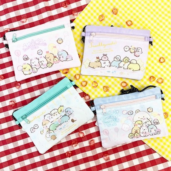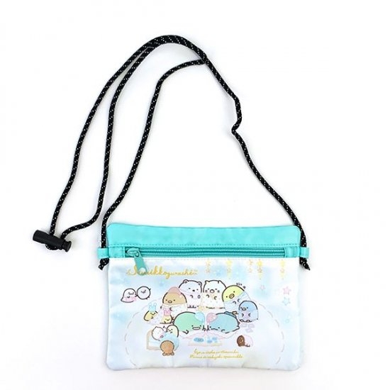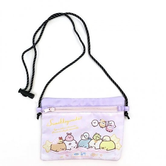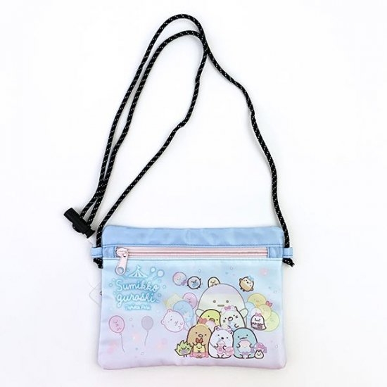 サコッシュは4色展開となっております。もともとは大人のファッションから流行したサコッシュ。軽くて薄いサコッシュはライブやアウトドア、テーマパークに持ち歩きやすくて今では定番のバッグとしてお店に置かれています。そんなサコッシュがすみっコぐらしデザインになって登場しました♪