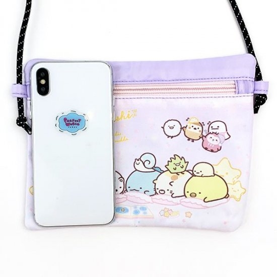 すみっコぐらしのサコッシュバッグでおでかけしよう♪お子様のお菓子を入れたりスマホを入れたり、ポケットも付いていて便利なんです。