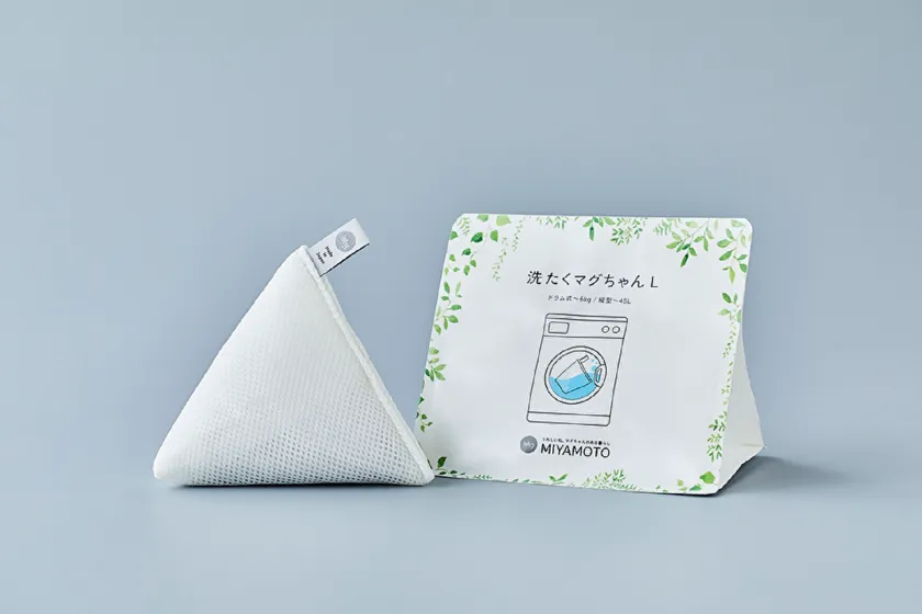 「マグネシウムと水だけ」で洗う、人と環境にやさしいお洗濯。高純度マグネシウムと一緒に洗濯するだけで、洗剤を使わずとも汚れをスッキリ落とす。洗浄力がありながら、一般的な合成洗剤と比べ、マグちゃんの洗濯排水は、環境負荷が小さく川や海を汚さない。また、その排水には、植物の光合成に欠かせないマグネシウム、有機農業の3栄養素である窒素、リン、カリウムが含まれており、農業の栄養水としてアップサイクルできる。 宮本製作所は「マグネシウムで世界を変える!」ことを決意し、未来の子どもたちのために、豊かな地球を残すため、「洗たくマグちゃん」を通じたさまざまな取り組みを行っている。