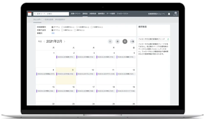 決算説明会や1on1面談などのイベントの予定の確認から申し込みをWEB上で行え、無駄が省けます。