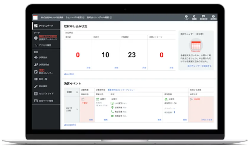 情報を集約、掲載することで機関投資家・アナリストの決算説明会への参加申し込み件数増加に寄与します。