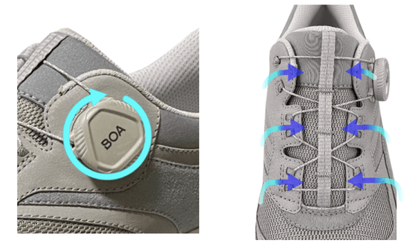 今回発売する「LC114」「MC114」のアッパーには、片手でダイヤルを回すだけですばやく最適なフィットが可能なBOA®️フィットシステム※を新たに搭載。足との一体感が高まり、さらに歩きやすくなりました。