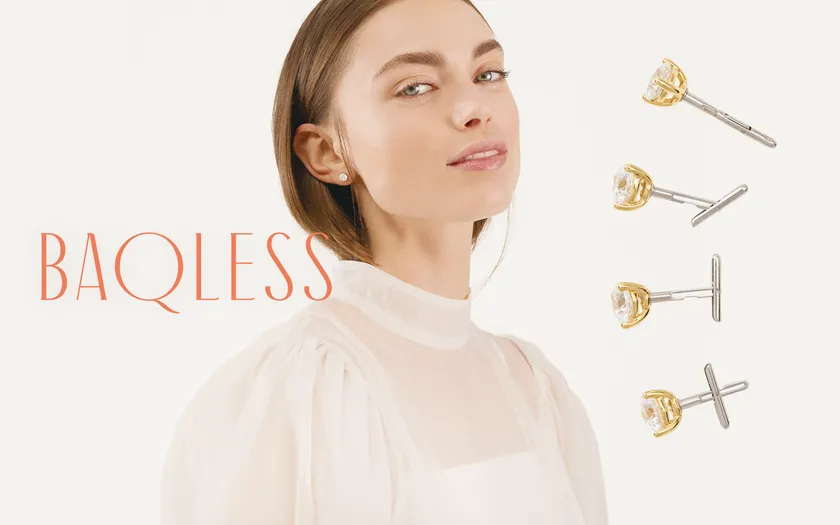 キャッチが一体となったピアス「Baqless(バックレス)」は、スイスの老舗腕時計ムーブメント会社が精密機械製造の技術を駆使して商品化を実現した、業界初の構造を持つ画期的なピアスです。軸部分が回転しキャッチ代わりとなるため、従来のピアスの問題点であった「キャッチがとれてピアスを失くしてしまう」という心配がなく、開放感のある軽い着け心地で締め付けの不快感を感じさせません。