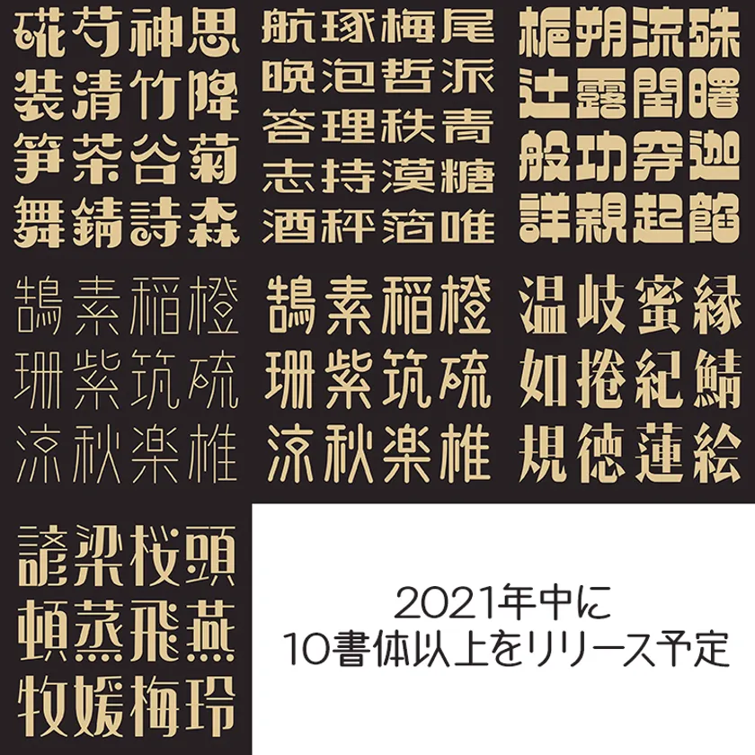 「楽フォント年間ライセンス」では、現在の7書体(玲優体、親剛体、書房体、書房体H、明朗体、文尚体、喜縁体)に加えて2021年内にさらに10書体以上の追加が決定
